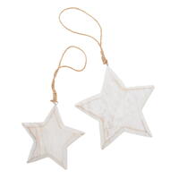 Der dekorative Hänger in Sternform aus Holz setzt stilvolle Akzente in der Weihnachtsdekoration. Mit seinem weiß gewaschenen Finish verleiht er jedem Raum eine harmonische und festliche Atmosphäre. Die sanfte Patina im Shabby-Chic-Stil passt perfekt zu modernen wie auch rustikalen Einrichtungsstilen und schafft eine gemütliche Winterstimmung.