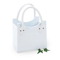 Dekorative Pflanztasche aus Holz in Weiß mit Folieneinlage und Griffen aus Kunstleder. Mit ihren Maßen von 27 Zentimetern Höhe, 18 Zentimetern Breite und 12 Zentimetern Tiefe bietet sie ausreichend Platz für bepflanzte Arrangements oder dekorative Füllungen. Kleine Unregelmäßigkeiten in Oberfläche und Struktur sind materialtypisch und unterstreichen den natürlichen Charakter des Holzes.