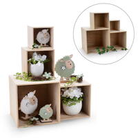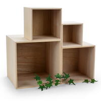 Ob als Regal, Wandgestaltung oder Aufbewahrungsbox - die schlichten Holzwürfel bieten zahlreiche Möglichkeiten für kreative Dekorationen. Sie lassen sich frei kombinieren, stapeln oder an der Wand befestigen und schaffen Platz für Pflanzen, Dekoelemente oder kleine Alltagsgegenstände.