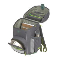 Großes Hauptfach und separates Bücherfach nahe am Rücken Fronttasche isoliert für Snacks; Seitentaschen mit Gummizug & Schlüsselfinder