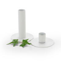 Feine Ästhetik trifft minimalistisches Design: Der weiße Metall-Stabkerzenhalter überzeugt durch seine klare Linienführung und die robuste Verarbeitung. Die runde Standfläche bietet sicheren Halt, während der zylindrische Einsatz Stab- oder Spitzkerzen mit Ø 22 mm zuverlässig positioniert - erhältlich in zwei harmonisch abgestimmten Größen.