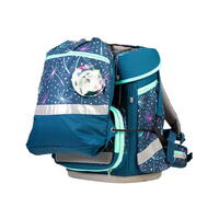 Nachhaltigkeit wird bei diesem Modell großgeschrieben: Der Rucksack ist aus recyceltem PET-Material gefertigt, 100% PVC- und PFC-frei sowie PETA-zertifiziert vegan. Zudem sind auch die Bunt- und Bleistifte aus recycelten Materialien und holzfrei - ideal für umweltbewusste Familien.