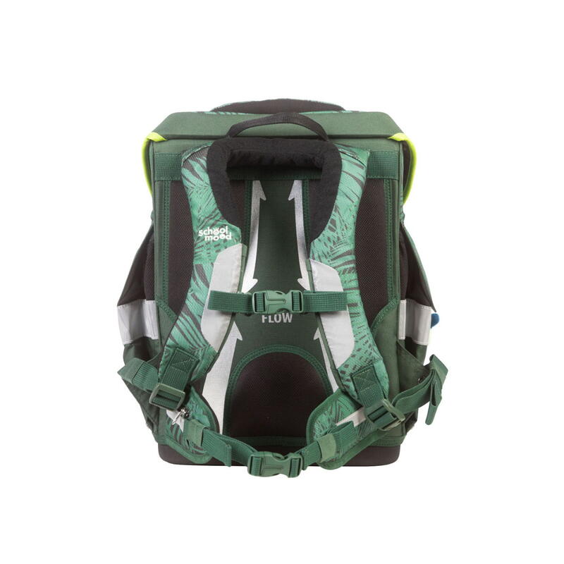 Für mehr Sicherheit im Straßenverkehr ist der Rucksack mit großzügigen retroreflektierenden Flächen (Oralite) ausgestattet, die bei schlechten Lichtverhältnissen für optimale Sichtbarkeit sorgen. Ein selbstschließender FidLock-Magnetverschluss ermöglicht kinderleichtes Öffnen und Schließen, während ein stabiler Tragegriff kurzzeitiges Tragen bequem macht.