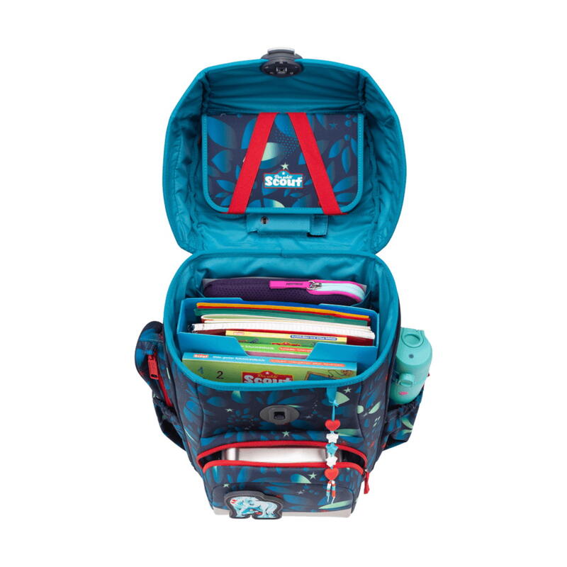 Der Scout Neo Schulranzen ist der perfekte Begleiter für die ersten vier Schuljahre. Mit seinen vielfältigen praktischen Eigenschaften bietet er ausreichend Stauraum und Komfort für den Schulalltag. Dank der sieben blinkenden Lichter und der retroreflektierenden Flächen leuchtet der Ranzen extra hell. Der Ranzen hat eine geräumige Reißverschluss-Vortasche, in der kleine Utensilien wie Stifte oder Schlüssel sicher verstaut werden können. Zusätzlich gibt es zwei Seitentaschen für Trinkflaschen oder kleine Regenschirme. Das große Hauptfach des Scout Neo Schulranzens ist mit einer praktischen Inneneinteilung ausgestattet, die hilft, Schulbücher und Hefte ordentlich zu verstauen und schnell wiederzufinden. Für den bequemen Transport ist der Schulranzen mit einem höhenverstellbaren Tragesystem ausgestattet. Der Rücken ist angenehm gepolstert und der Ranzen verfügt über einen Brust- und Hüftgurt zur optimalen Gewichtsverteilung. Reflektierende Elemente sorgen dafür, dass der Träger auch bei Dunkelheit gut sichtbar ist. Der flache Deckel und der Multifunktionsgriff machen den Scout Neo Schulranzen besonders praktisch im Alltag, und der Magnetverschluss ermöglicht ein einfaches Öffnen und Schließen.