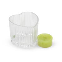 Herzförmiger Teelichthalter aus Glas (Ø 7,5 × H 6,5 cm) kombiniert romantisches Design mit hochwertiger Funktionalität. Die geriffelte Oberfläche streut das Licht dezent und verleiht jedem Raum eine warme, einladende Atmosphäre. Ideal für feierliche Anlässe und stimmungsvolle Dekorationen unterschiedlichster Stilrichtungen.